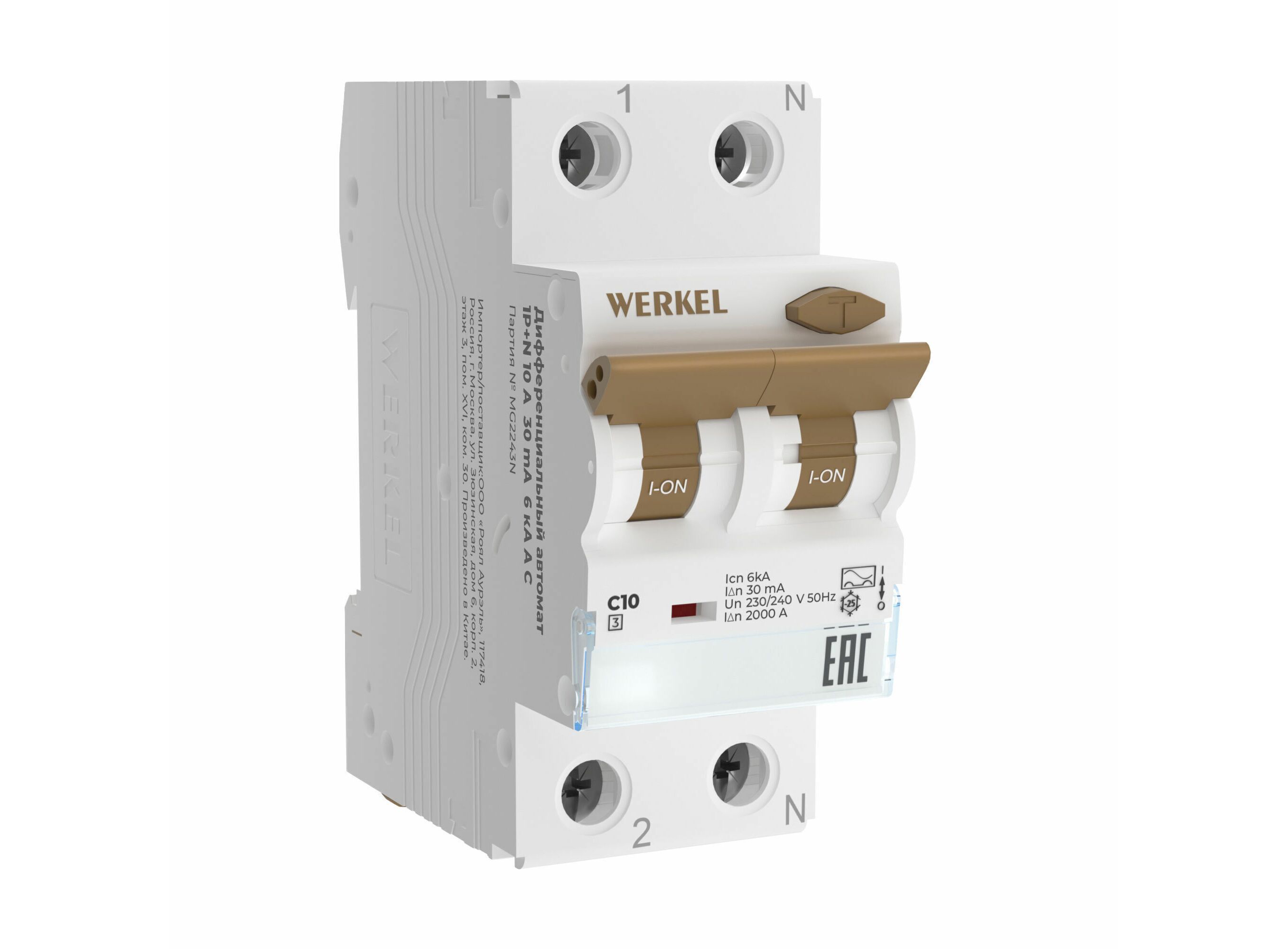W922P254 / Дифференциальный автомат 1P+N 10 A 30 mА 6 kА C A W922P254
