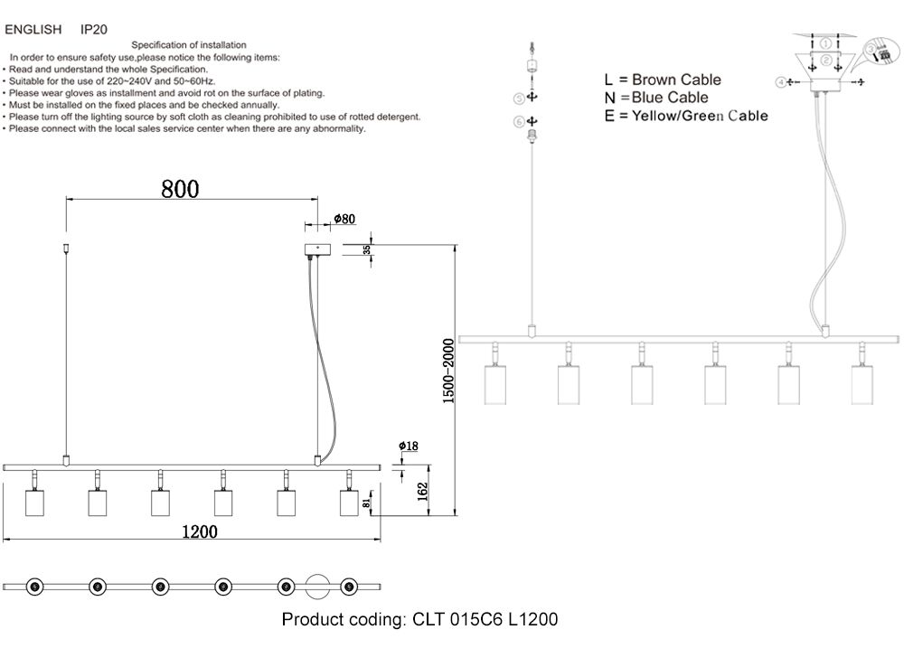 Crystal Lux Светильник потолочный Crystal Lux RIVO SP6 L1200 BL
