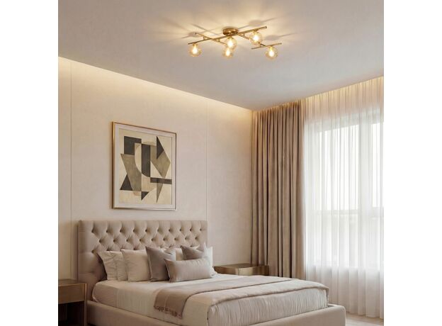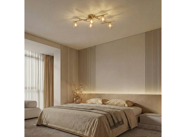 <p>Потолочный светильник из коллекции Liana станет прекрасным дополнением к вашей гостиной, спальне или столовой. Геометрическая конструкция в сочетании со стеклянными янтарными плафонами создает современный и утонченный вид.<br>Плафоны мягко рассеивают свет, создавая приятную и уютную атмосферу. Янтарный оттенок придает свету теплоту, делая его идеальным для расслабляющего вечера.</p>
