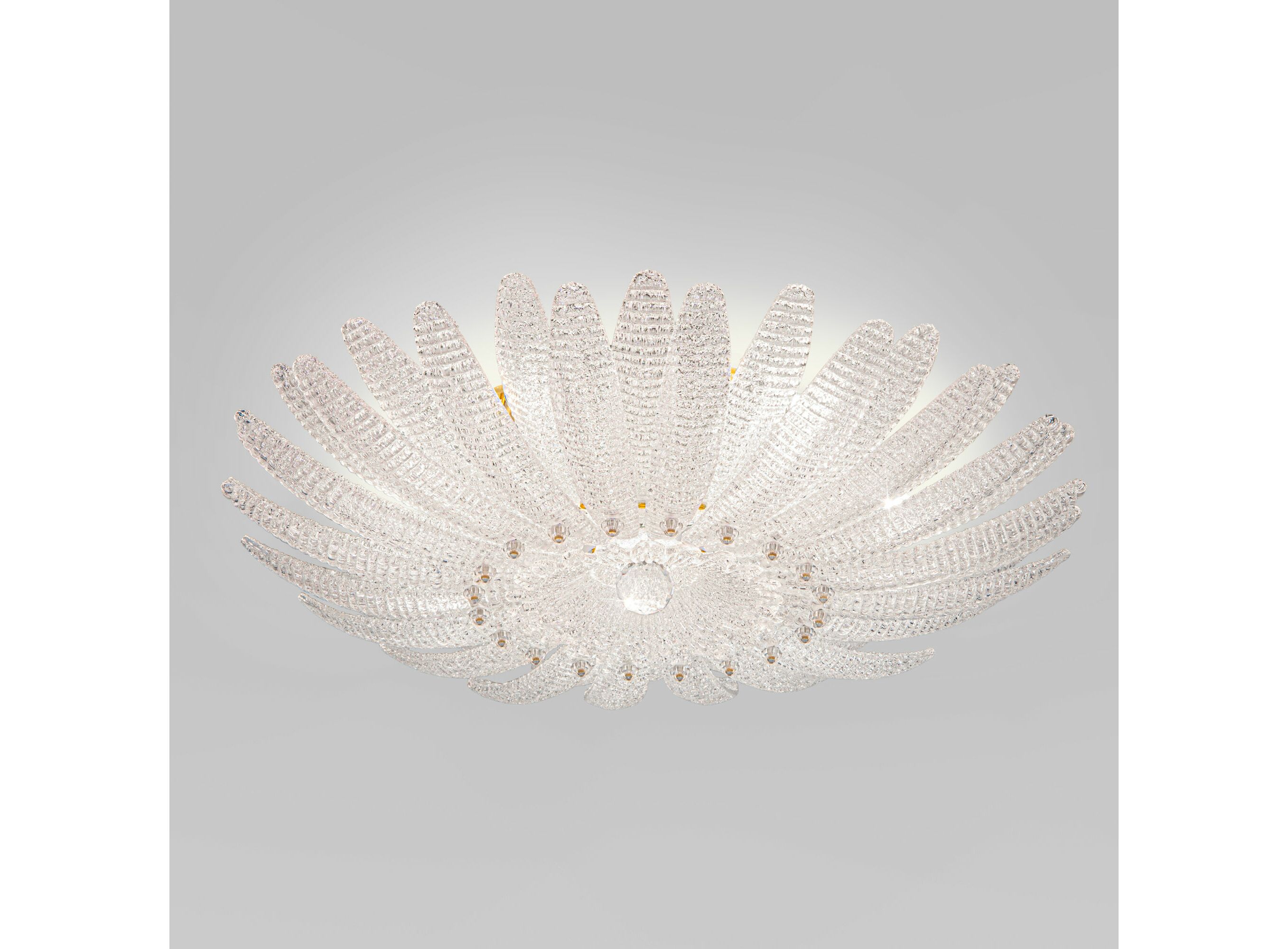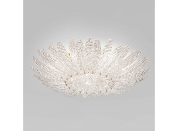 <p>Потолочный светильник в форме цветка — изящное сияние в вашем интерьере. Светильник 101015/10 — не просто источник света, а настоящее украшение пространства. Рельефное стекло с алмазной крошкой создаёт эффект драгоценного цветка, застывшего в вечном цветении. В лучах света он оживает, наполняя комнату атмосферой утончённой роскоши и волшебства.</p>
