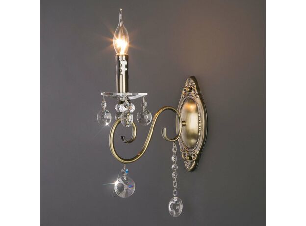 Классическое бра с хрусталем 10104/1 античная бронза/прозрачный хрусталь Strotskis