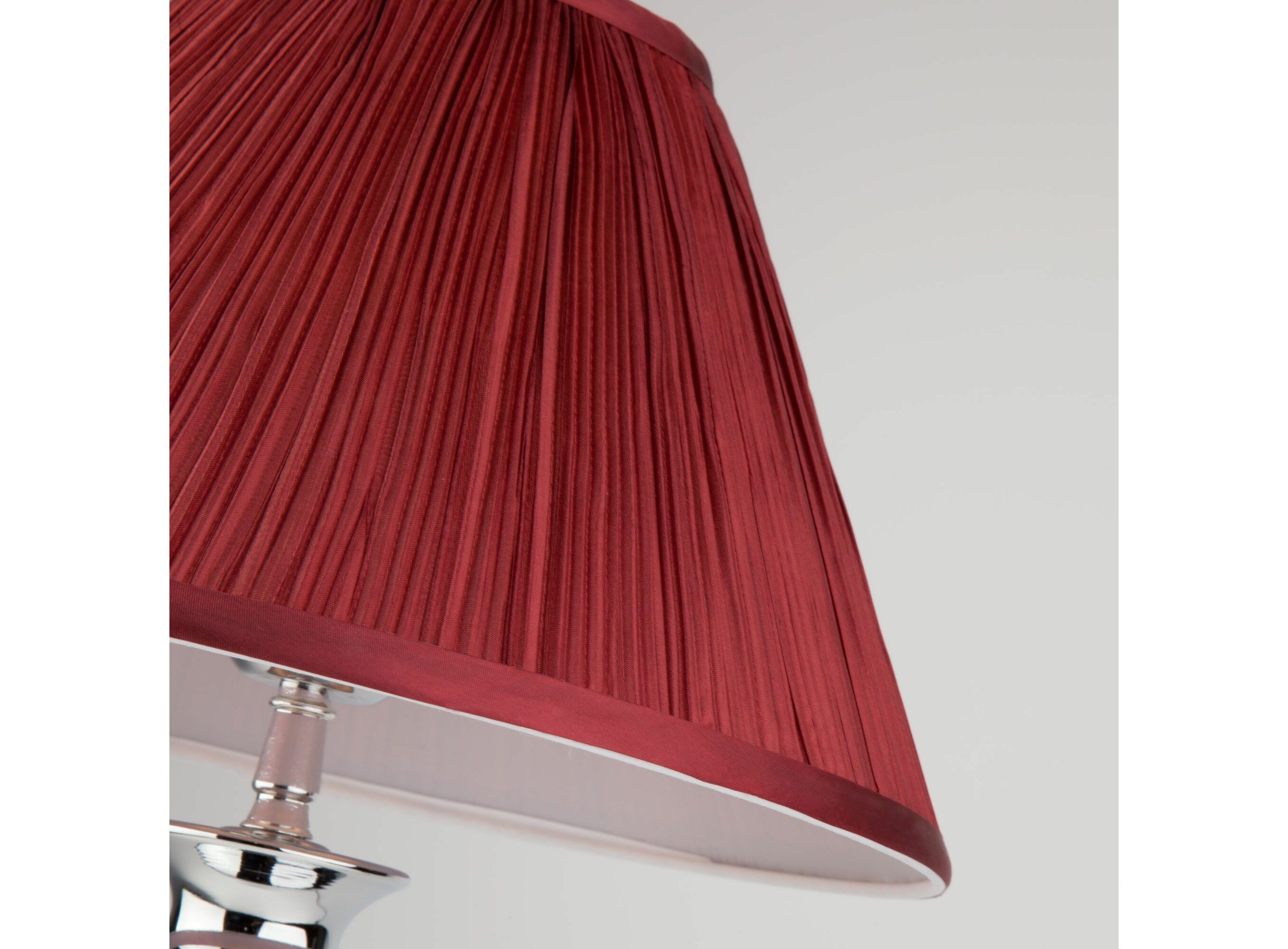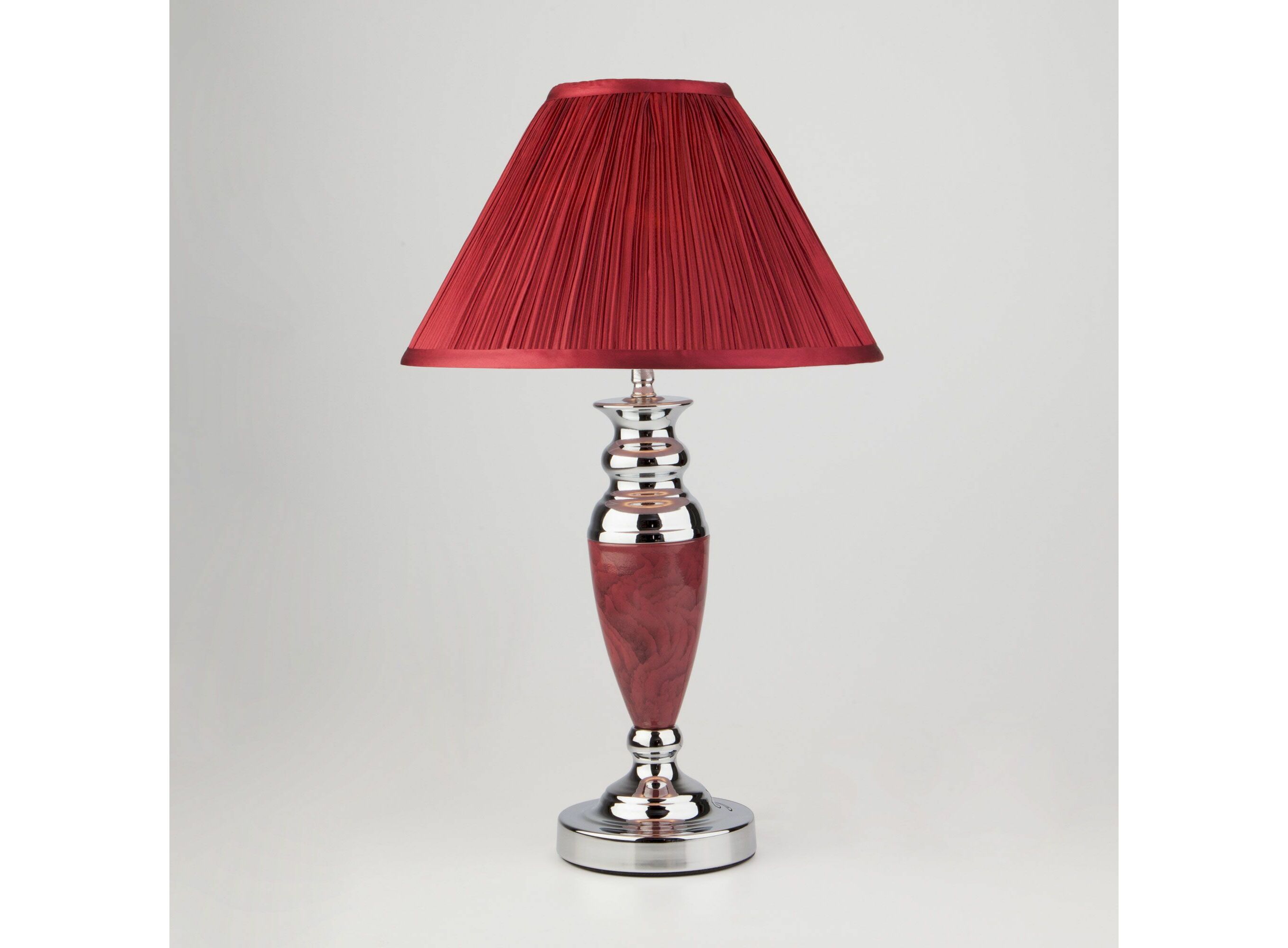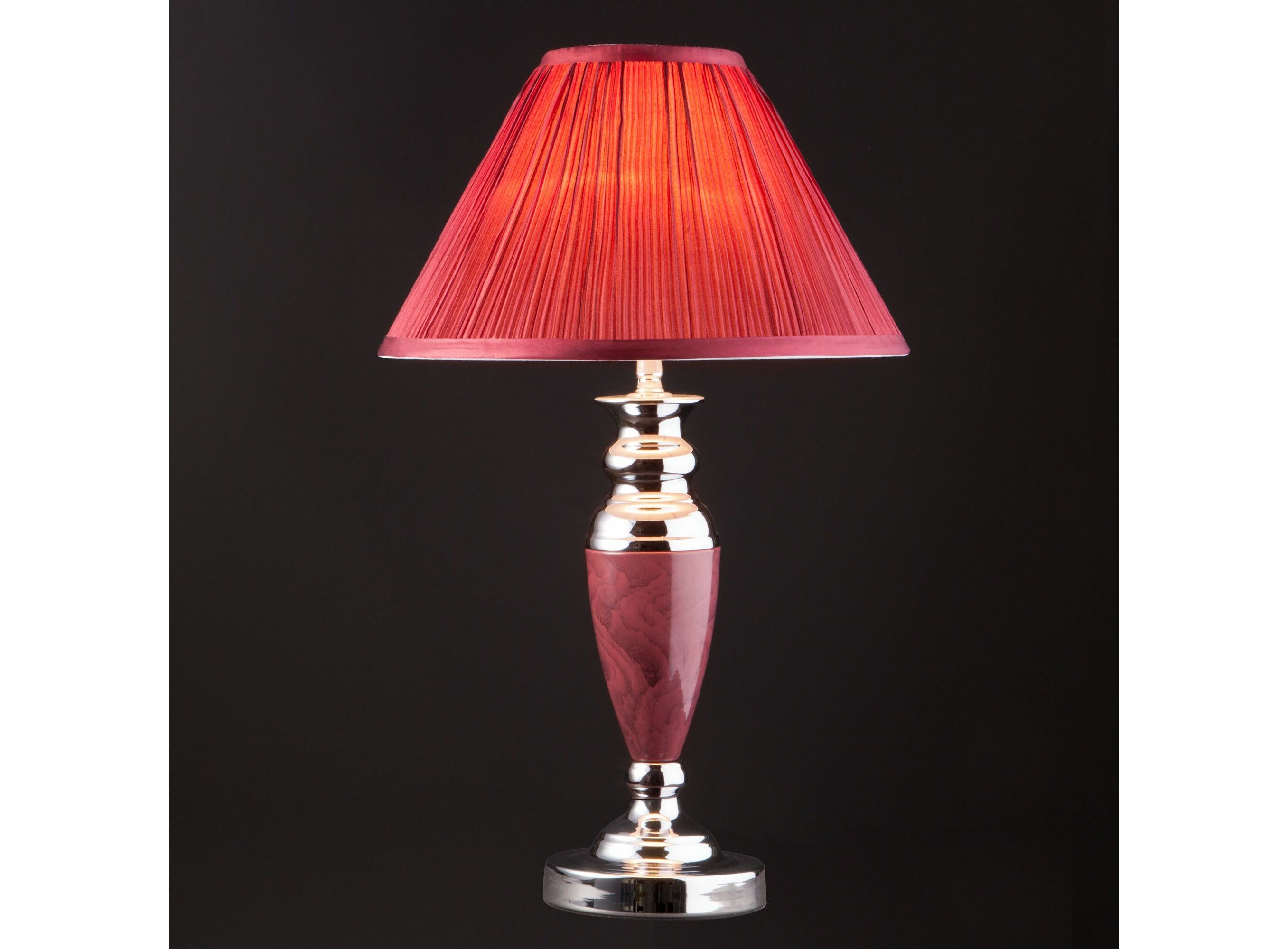 <p>Благодаря бордовому тканевому абажуру настольная лампа создает мягкое рассеянное свечение, подходящее для комфортного чтения книг в вечернее время. Прочный металлический корпус светильника устойчив к механическим воздействиям, а защитное покрытие обеспечивает надежную электроизоляцию.</p>