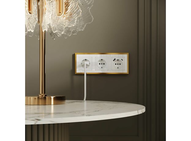 W0032853/ Рамка на 3 поста Baguette (белый/золотистая латунь) W0032853