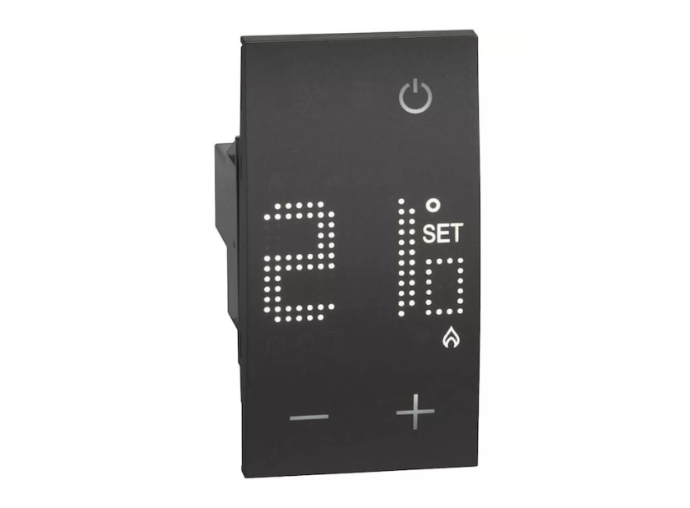 Терморегулятор/термостат цифровой с дисплеем для воздуха 230В 5(2)А 2 модуля. Цвет Чёрный. Bticino серия Living Now. KG4441