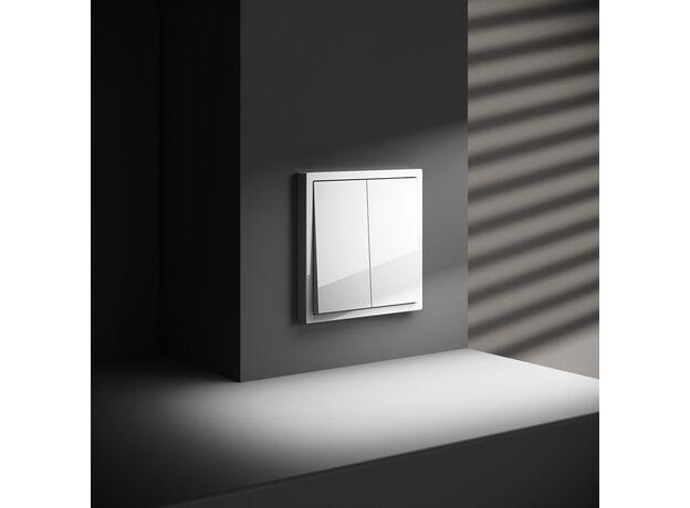 Проходной переключатель встраиваемый VOLTUM S70 двухклавишный 10А, (белый глянцевый)