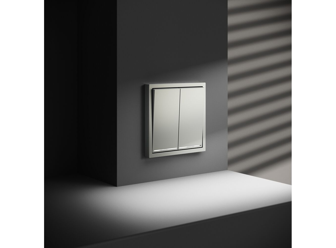Проходной переключатель встраиваемый VOLTUM S70 двухклавишный с подсветкой 10А, (сталь)