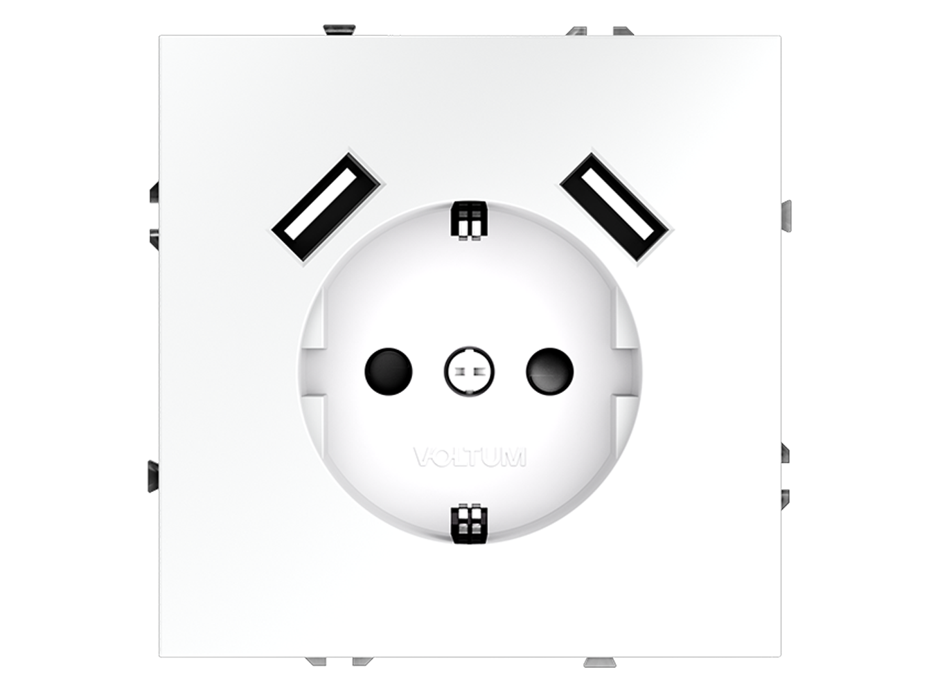 Розетка встраиваемая VOLTUM S70 с заземлением и защитными шторками, 16А, с USB, A+A, (белый матовый)