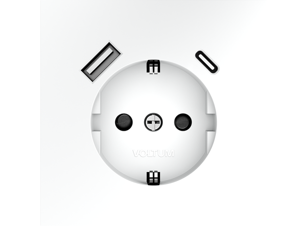 Розетка встраиваемая VOLTUM S70 с заземлением и защитными шторками, 16А, с USB, A+С, (белый матовый)