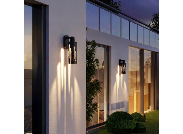 <p>Уличный настенный светильник Streak станет настоящим украшением фасада здания. Металлический плафон выполнен в строгом и современном дизайне, декорирован вертикальными прорезями, сквозь которые проходит мягкий и рассеянный свет. Благодаря оригинальной конструкции, модель создает на стене световые узоры для уютной атмосферы и эстетичной привлекательности пространства.</p>